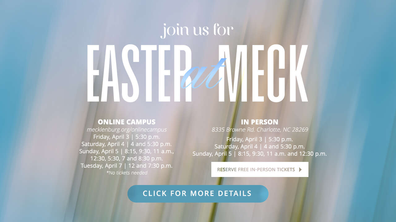 Thanks for checking us out! We are currently in between service times, but would love to invite you to join us for an online service right here at any of the times listed below. In the meantime, we hope you'll click around and explore what Meck is all about.